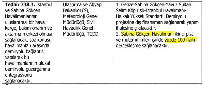 - "Sabiha Gökçen Havalimanı ikinci pist mütemmimleri işinde yüzde 100 fiziki gerçekleşme sağlanacaktır."