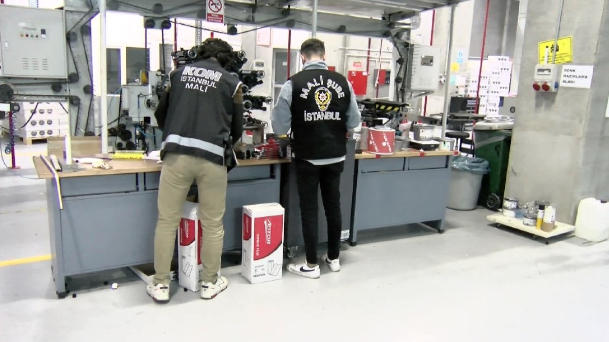 Ürünlerin yapılması için 32 parçadan oluşan 3 ayrı üniteli üretim bandına da el konuldu. (DHA)