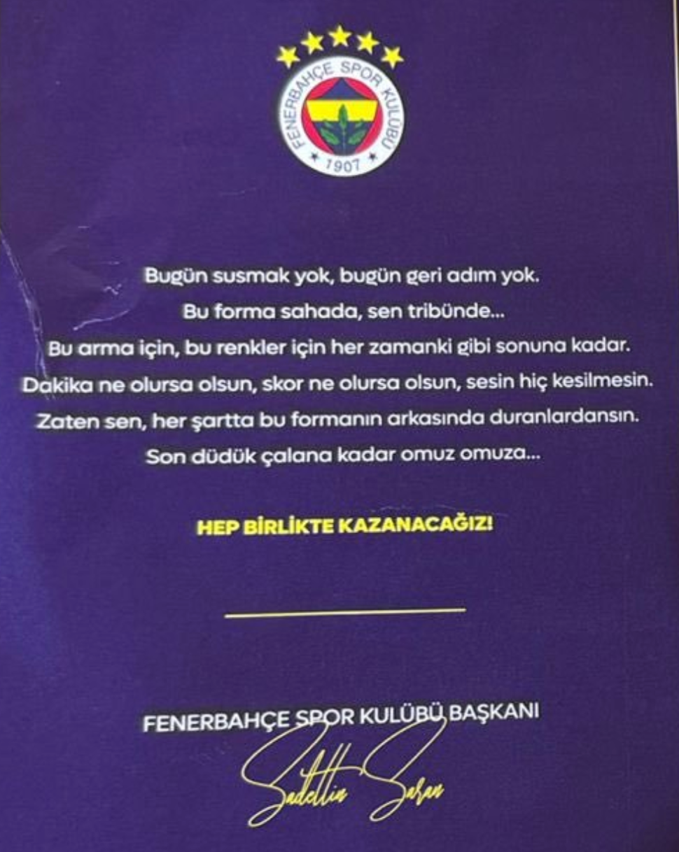 Dağıtılan formaların yanında başkan Sadettin Saran’ın da notu da vardı. Yazılan notta şu ifadelere yer verildi: