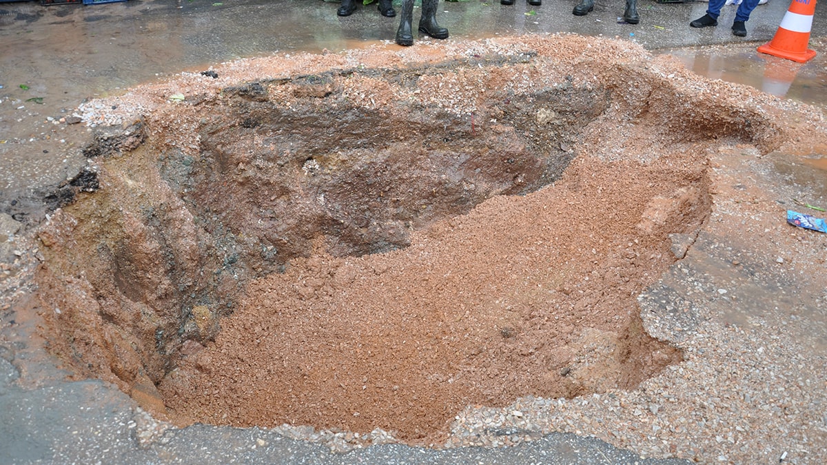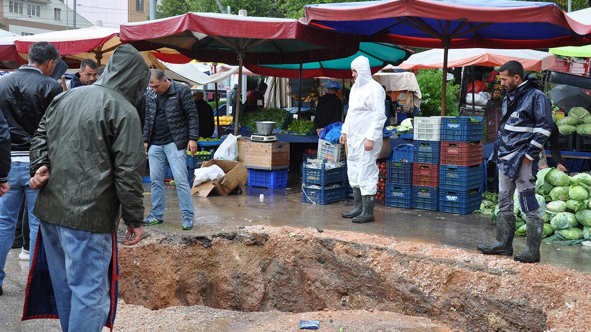 Eskişehir'de sağanak nedeniyle pazar kurulan bir caddede çökme meydana geldi.