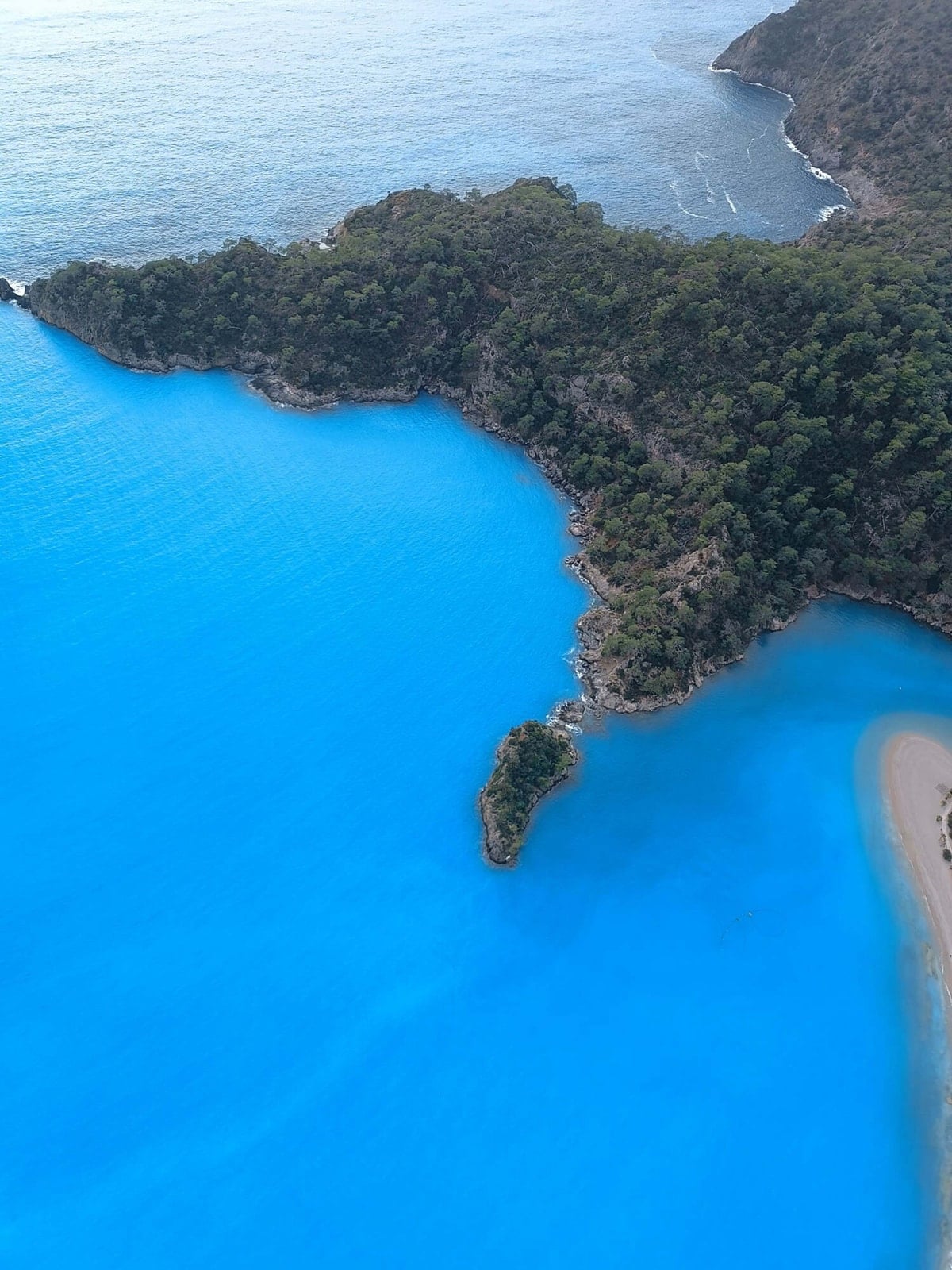 Dünyaca ünlü Ölüdeniz'in rengi iki gündür etkili olan sağanağın ardından güneşli havayla birlikte turkuaza döndü.