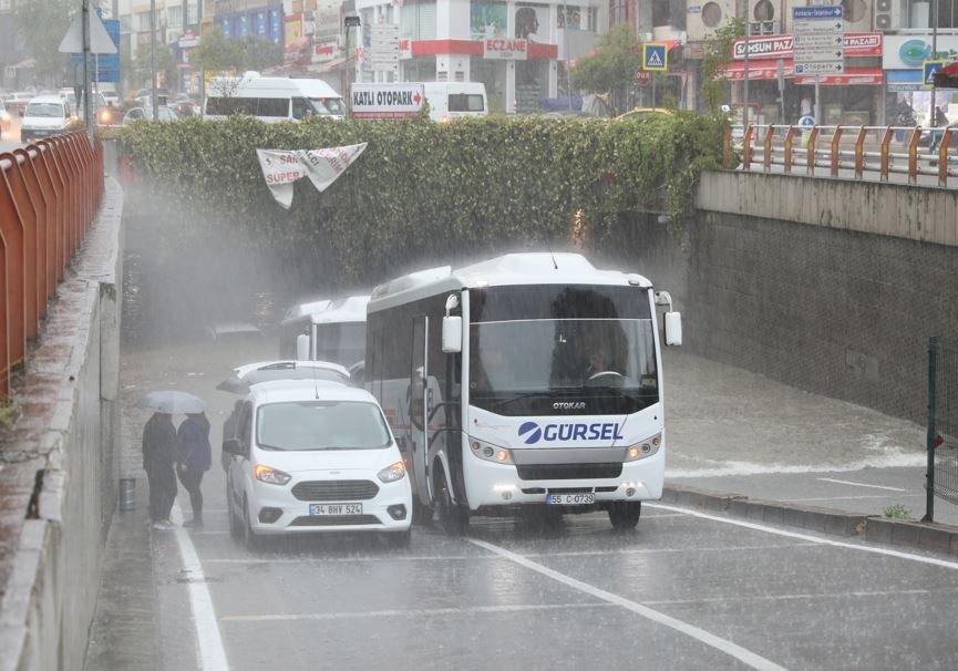 Samsun'da suyla dolan alt geçitte otomobilde mahsur kalan 4 kişi yüzerek kurtuldu. Kentte etkili olan sağanak nedeniyle 100. yıl Bulvarı Kilise Kavşağı'ındaki alt geçidi su bastı. Otomobilleriyle suyun içinde kalan 3'ü kadın 4 kişi yüzerek alt geçitten çıkmayı başardı. Kadınların bağırması üzerine çevredekiler yardıma koştu. 4 kişi park halindeki bir otobüse alındı.