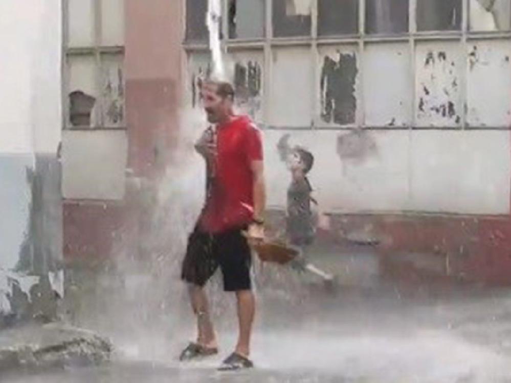 Merkez Osmangazi ilçesi Namık Kemal Mahallesi'nde tıkanan rögar kapakları sebebiyle sokak göle döndü. Bir vatandaş da sağanak yağış altında oluklardan akan suyla adeta duş aldı.