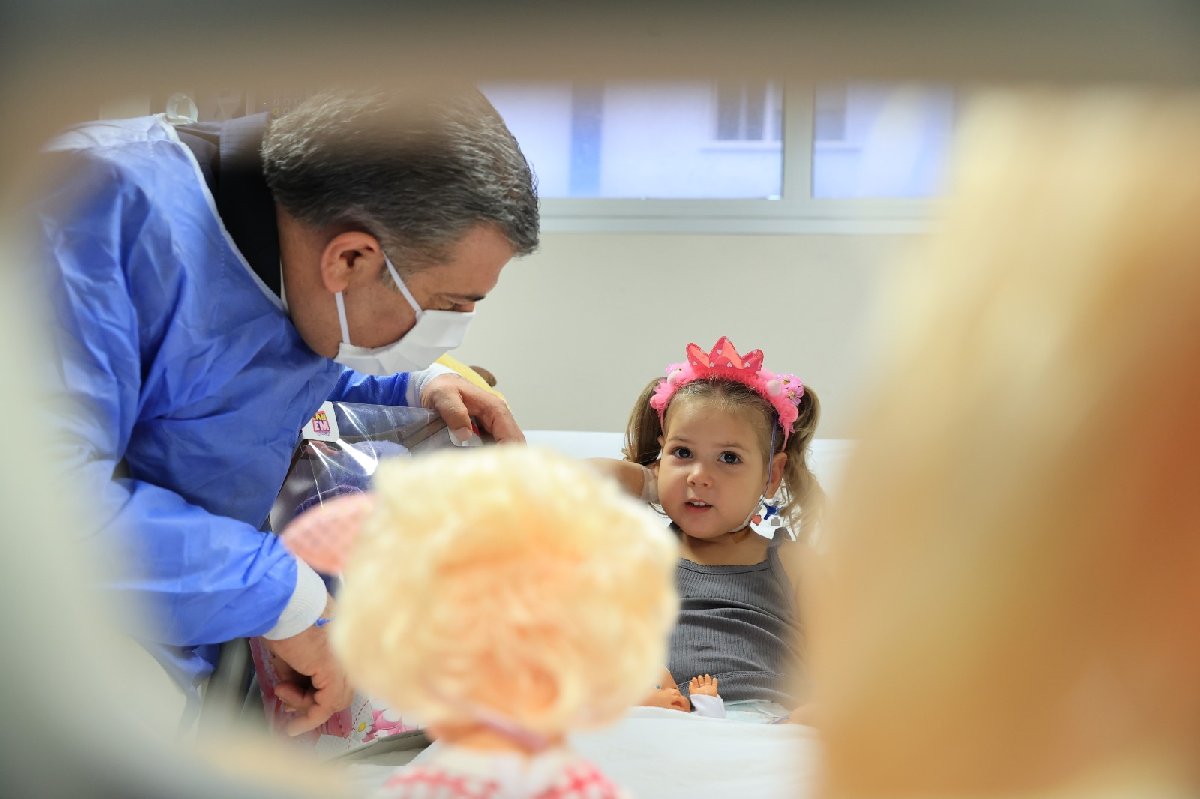 Ayda’ya hediye ettiği bebeğin adını ne koyacağını soran Koca’ya Ayda, “Maymun” cevabını verince eğlenceli anlar yaşandı. Koca’ya hastanede neler yaptığını anlatan Ayda, “Biz boyama yaptık sonra onu başka bir yere koyduk. Benim bir sürü bebeklerim var” dedi. Bakan Koca Ayda’ya, babasıyla birlikte yukarıda başka bir odaya alınacağını söyleyince, Ayda, “Benim odam var” cevabını verdi. Daha sonra Koca Ayda’ya bir isteği olup olmadığını sordu, Ayda ise, “Maymun” cevabını verdi.