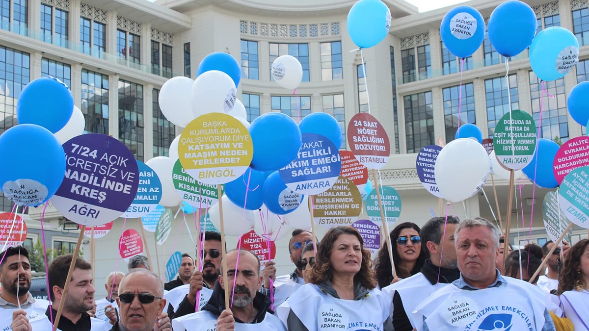 Sağlık ve Sosyal Hizmet Emekçileri Sendikası (SES) üyesi hemşireler Sağlık Bakanlığı önünde toplandı. Hemşireler “Sağlığa bakan aranıyor!” sloganıyla bakanlık binasına doğru balon uçurdu.