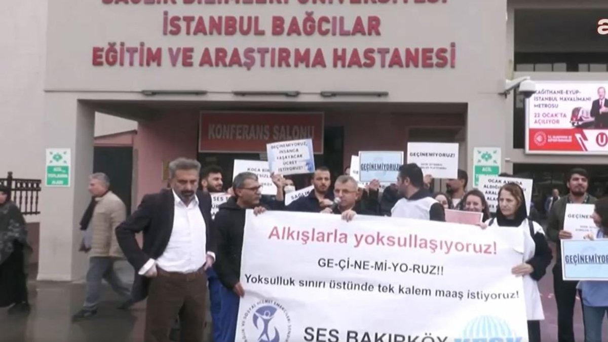 Sağlık ve Sosyal Hizmet Emekçileri Sendikası (SES) Bakırköy Şubesi, İstanbul’daki Bağcılar Eğitim ve Araştırma Hastanesi önünde, promosyon anlaşmaları, Türkiye İstatistik Kurumu (TÜİK) verileri ve memurlara yapılan yüzde 30’luk ücret zammını protesto etti.