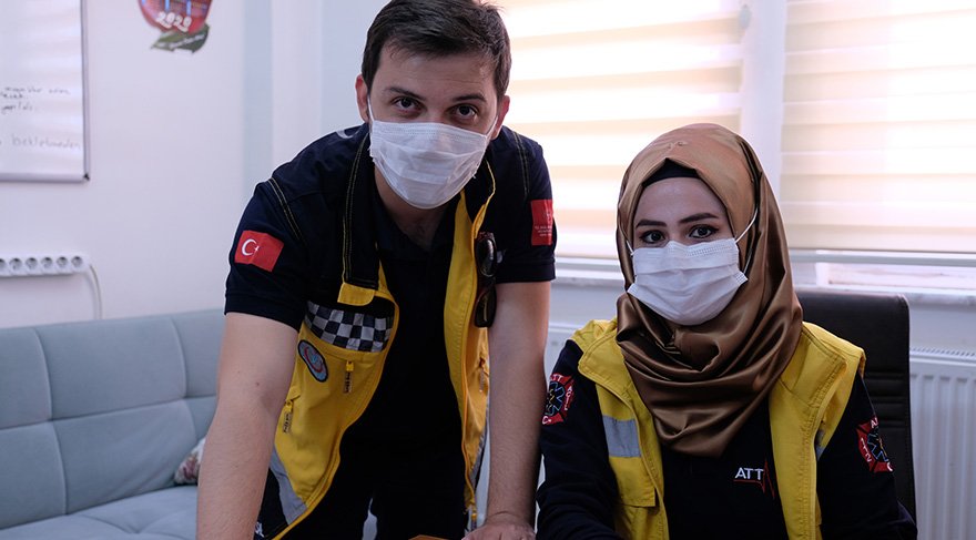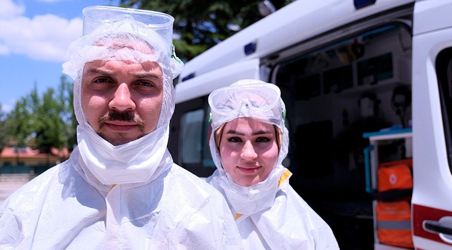 Yaklaşık 20 gün boyunca karantina kalan Ayşenur ve Tayfun Özpınar çifti corona virüsünü yendikten sonra yeniden görevlerinin başına döndü. Görev yaptıkları istasyonda gelen vaka ihbarlarına birlikte giden çift, koruyucu kıyafetlerini giyip corona virüsü hastalarının yardımına koştu.