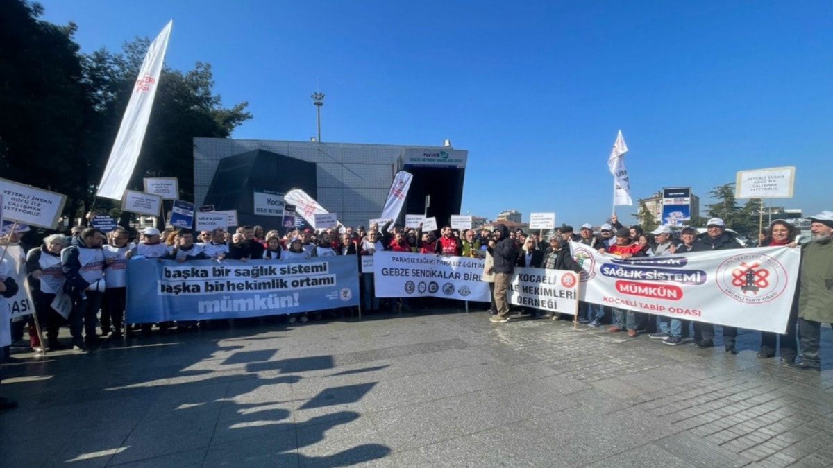 “Başka bir sağlık sistemi, başka bir hekimlik ortamı mümkün” sloganıyla Ankara’ya yürüyen sağlık emekçileri “Sağlık haktır, satılamaz” sloganları attı. Basın açıklaması yapan Kocaeli Tabip Odası Genel Sekreteri Kenan Cibaroğulları, AKP iktidarının sağlık politikasını şu sözlerle eleştirdi: Hekimler ve sağlık çalışanları; artan iş yükü, 5 dakikada muayene, maddi zorluklar ve siyaset sisteminin hataları nedeniyle yılgın, bitkin ve isteksiz.