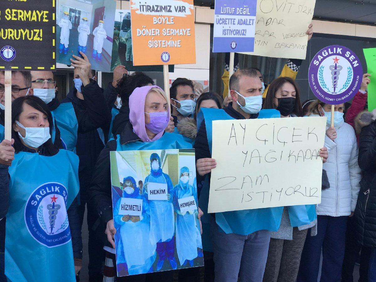 "Sağlık çalışanları olarak yağ kadar zam istiyoruz. Enflasyon oranını gerçekte olan kadar artış istiyor. Son günlerde gerçekleşen ve aşırı gelir kaybı, alım gücü düşüklüğü, gıda da yapılan büyük zamlar, hayat pahalılığı cabası. Fırsatçı değiliz. Yaşam zorluğunu ezilmeden atlatmak istiyoruz. Sağlık çalışanı bu kadar zor durumda iken bütün memurlar enflasyona yeniliyor diyen var ise; öğretmen, imam, polis, asker, onlarda bordrolarını paylaşsın. En kötü durumda olana devletimiz müdahale etsin. Bizler tek maaş içinde yaşayacak adil bir düzenleme istiyoruz. Bakanlıkta rahat makamlarda sıcak çaylarını içenler bilsinler ki hakkı ödenmeyen sağlık çalışanlarını bunca haksızlığa rağmen anlayamamak ve anlatamamak büyük beceri istiyor. Sağlık çalışanları can çekişiyor bizden söylemesi."