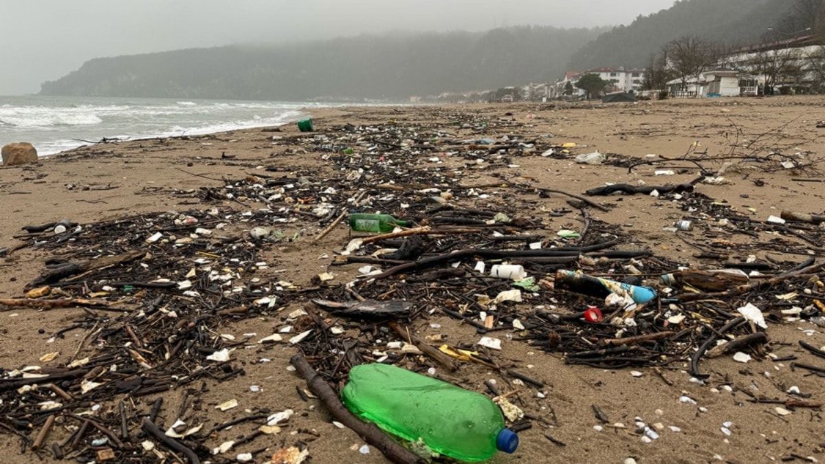 Bartın'da sağanak nedeniyle Bartın Irmağı'nın denize sürüklediği atıklar, İnkumu sahilinde kirliliğe neden oldu.