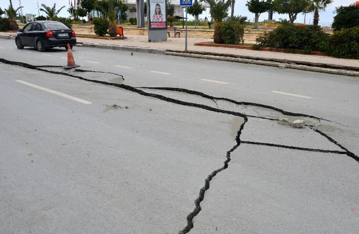 Eda Apartmanı'nın bulunduğu Cengiz Topel Caddesi'nde de büyük depremlerde çökmeler meydana geldi. Büyük yarıkların oluştuğu cadde, denizin taştığı ilk gün suyla doldu. Suların çekilmesiyle birlikte yarıkların boyutu da ortaya çıktı. Yarıkların içerisinin deniz kumlarıyla dolduğu görülürken, caddede bazı araçlar yarıkların çevresinden ilerlemeye devam ediyor. (DHA)