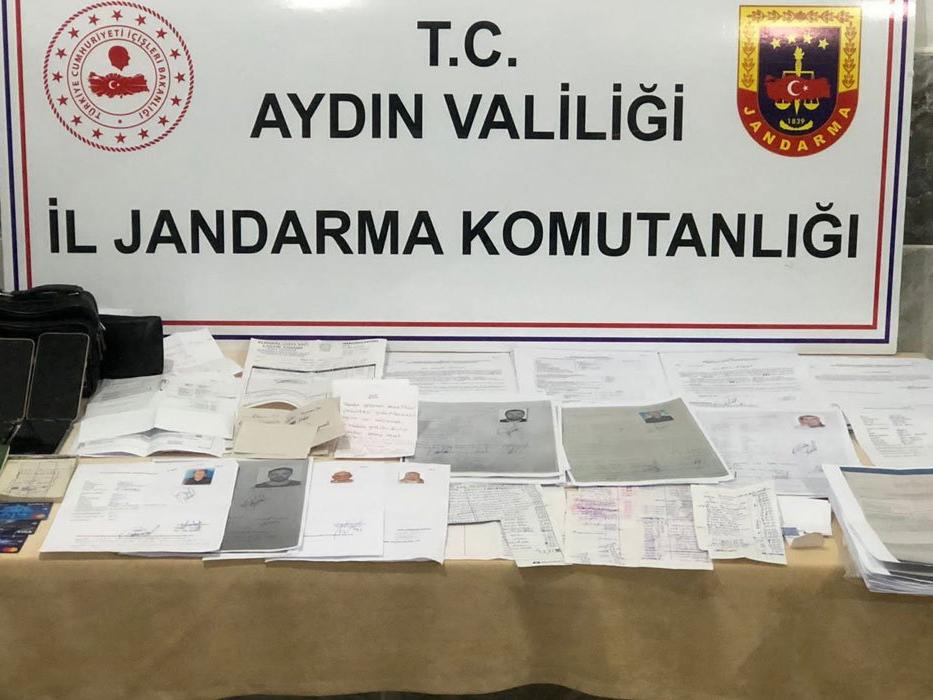 Adli makamlardan alınan izinle ev ve otomobillerinde yapılan aramalarda Aydın ve farklı illerde bulunan Milli Emlak Müdürlüklerine ait çok sayıda belge ele geçirildi.