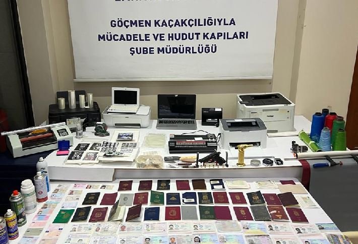 Çalışmalarını tamamlayan ekipler, adrese düzenledikleri operasyonda sahte belge ve kimlik üretimi yaptığı belirlenen M.A, B.A. ve R.B'yi yakaladı. Adreslerde yapılan aramalarda ruhsatsız tabanca, 4 yazıcı, 2 lamine kaplama cihazı, mor ışık, pres aleti, 2 farklı ülkeye ait mühür ile çok sayıda farklı ülkelere ait pasaport, vize yaprağı ve kimlik kartı ele geçirildi. Emniyetteki işlemlerinin ardından adliyeye sevk edilen şüphelilerden M.A, B.A ile R.B çıkarıldıkları mahkemece tutuklandı; H.M.H adli kontrol şartıyla serbest bırakıldı. (DHA)