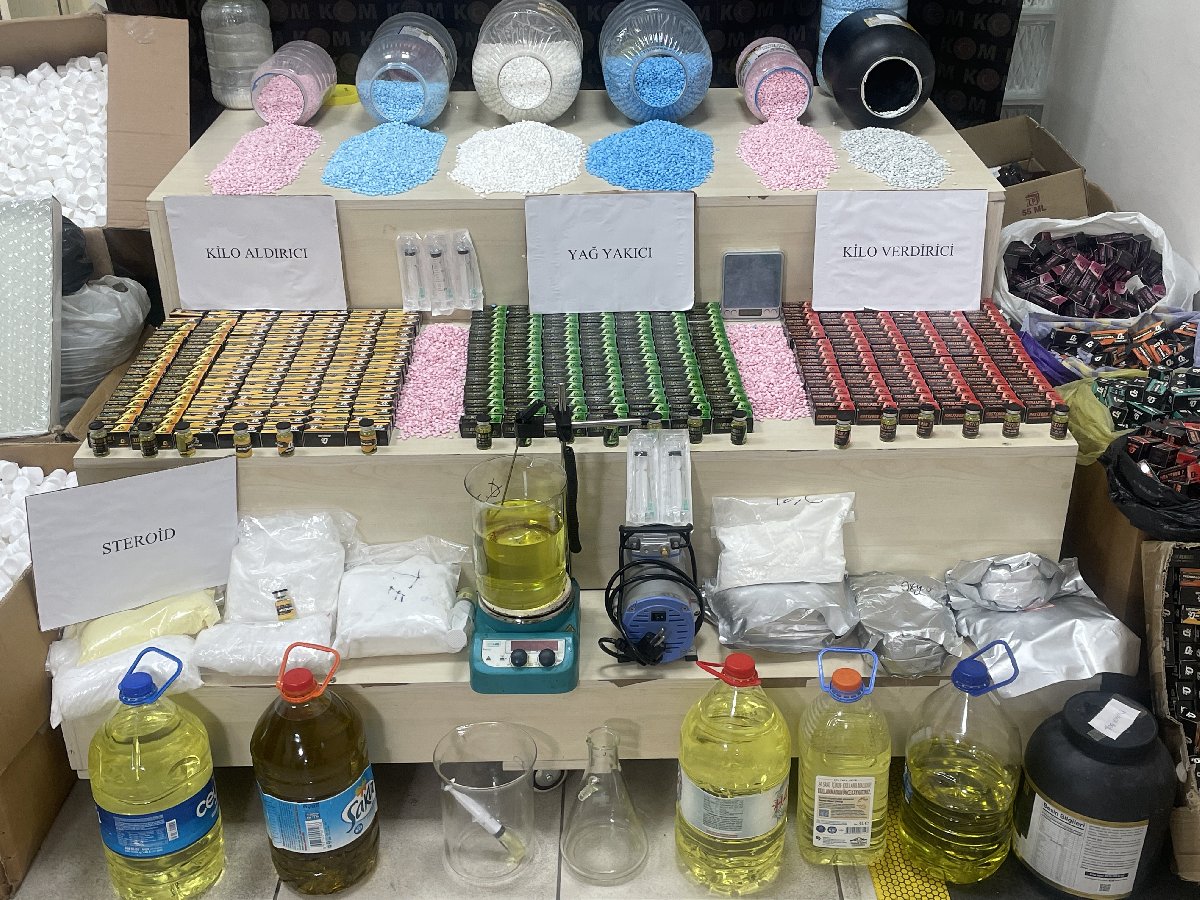 Operasyonda 197 bin sahte vücut geliştirme hapı, 1834 farklı boyutlarda şişeli ilaç, 7 kilo 438 gram steroid toz ham madde, 24.5 litre sıvı ham madde, imalat malzemeleri, 8 bin 815 ambalaj malzemesi ile gümrük kaçağı 25 elektronik cihaz, su altı drone, kolon ve kiriş direnci ölçüm cihazı ele geçirildi. Hakimliğe çıkarılan zanlılar hakkında adli kontrol şartı kapsamında ev hapsi ile yurt dışına çıkış yasağı kararı verildi. (AA)