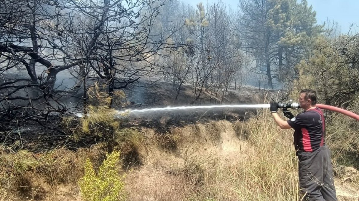Yaklaşık 3 saatte söndürülen yangında, yaklaşık 8 dönüm ağaçlık alan yandı. (AA)