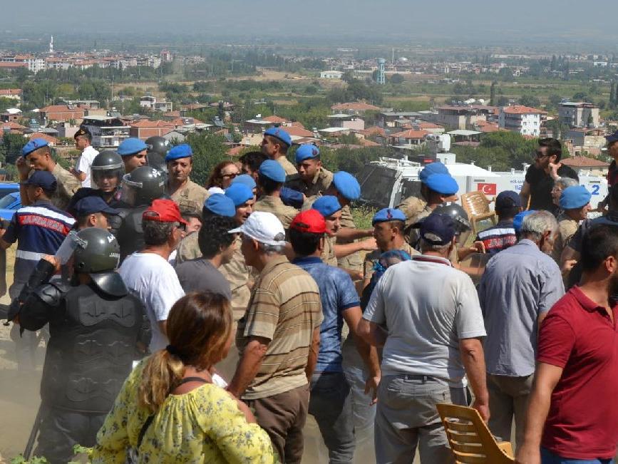 DHAJES istemediklerini haykıran eylemcilerin sayısı, 200 kişiyi aştı. CHP Manisa milletvekilleri Bekir Başevirgen ile Ahmet Vehbi Bakırlıoğlu da protestocu gruba destek verdi. Jandarmaya destek için bölgeye, polis ekipleri de sevk edildi. Ayrıca Toplumsal Olaylara Müdahale Aracı (TOMA) da bölgede hazır bekletildi. Güvenlik güçleri topluğa, 30 dakika arayla eylemi sonlandırması için 3 kez dağılmaları uyarısında bulundu.