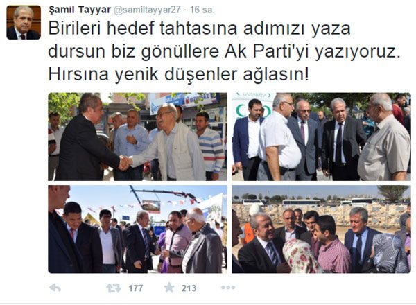 Bülent Arınç, "11 CHP’li gençlik kolları üyesi vefat ettiği için (CHP Genel Başkanı) Kılıçdaroğlu cenazeye gitti. 11 tane genci hayatını kaybetmişse senin de, benim de, Sayın Gül'ün de, bir başkasının da ona başsağlığı dilemesi insani bir görevdir. Bunu kimse yadırgamasın. Bunu Şamil Tayyar yadırgamış olabilir. Ben de Şamil Tayyar'ı yadırgıyorum. Bu insani bir görevdir. HDP’den şu kadar teşkilat mensubu hayatını kaybetmişse, bir siyasi parti liderine başınız sağolsun demek insani bir görevdir. Bunu yadırgayanları Türk milleti de yadırgar. Biz insani görevlerimizi hiçbir zaman ihmal etmemeliyiz. Siyasetçiler her zaman birbirine destek olmalı, acısını paylaşmalı. Onlar benim düşmanım değil, rakiplerim. Ne Demirtaş, ne Kılıçdaroğlu benim düşmanım. Yarın seçimden çıktıktan sonra selam vereceğiz" demişti.