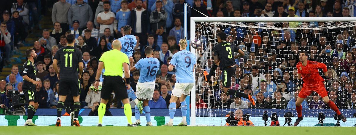 Ataklarını sıklaştıran City'de De Bruyne'ün sol kanattan kullandığı serbest vuruşta topa iyi yükselen Manuel Akanji'nin kafa vuruşu, Real Madridli savunma oyuncusu Eder Militao'ya çarparak yön değiştirdi ve ağlarla buluştu. Brezilyalı oyuncunun kendi kalesine attığı golle City, rakibi karşısında 3-0 öne geçti.