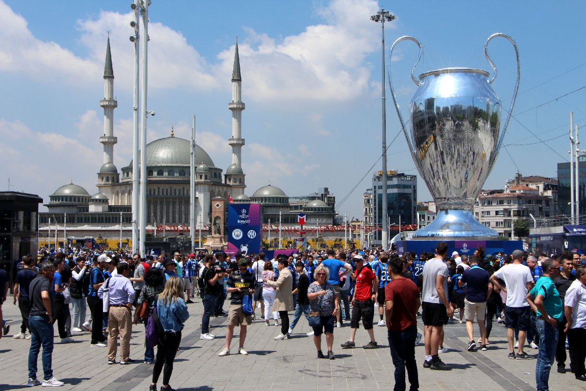 UEFA Şampiyonlar Ligi finali için İstanbul'a gelen Inter ve Manchester City taraftarları İstanbul'un tarihi ve turistik mekanlarını ziyaret etti. İtalya'nın Inter ve İngiltere'nin Manchester City takımlarının taraftarları, Tarihi Yarımada'da Ayasofya-ı Kebir Cami-i Şerifi, Sultanahmet Camii, Yerebatan Sarnıcı gibi mekanları gezerken Taksim Meydanı'nda kurulan alanda da müzik eşliğinde eğlendi.