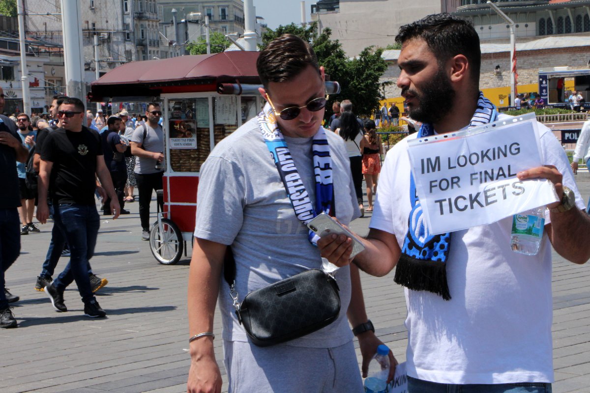 Bazıları meydanda kurulan ses sistemi ile coşarken, bazıları da bilet bulma telaşına girdi. Bileti olmayan taraftarlar ellerinde ve boyunlarında İngilizce ve İtalyanca bilet aradıklarını belirten yazılar taşıdı. Taraftarlar maç saati yaklaşınca Olimpiyat Stadı'na doğru yola çıkacak.