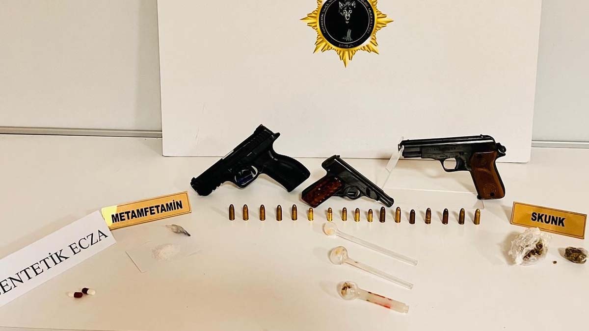 Adreslerde arama yapan ekipler, 3 ruhsatsız tabanca, 12,24 gram sentetik uyuşturucu, 2 sentetik hap, 3 uyuşturucu kullanma aparatı ile 17 tabanca fişeği ele geçirdi.