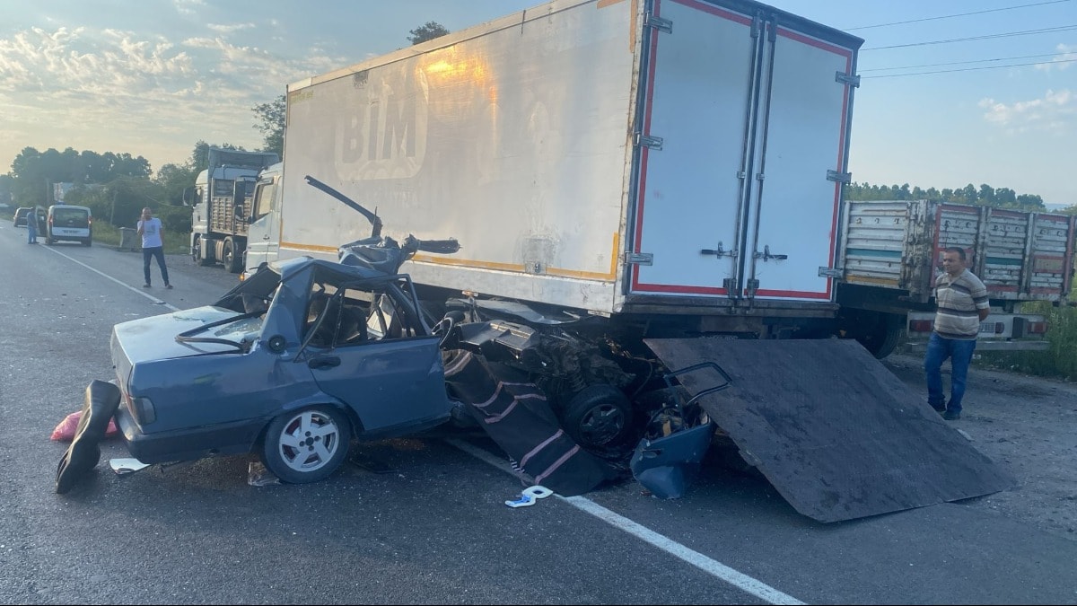 Necati Boğa’nın (38) kontrolünü yitirdiği 06 N 1178 plakalı otomobil, yolun karşısındaki benzin istasyonuna geçmek için emniyet şeridinde duraklayan 55 RG 110 plakalı kamyona arkadan çarptı.