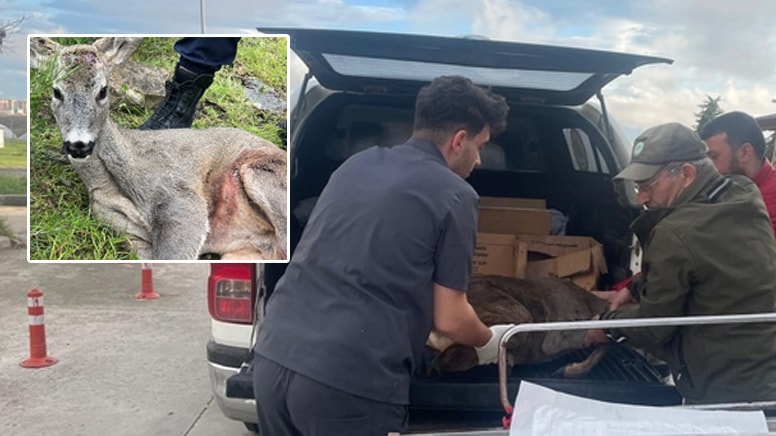 Yaralı karacanın ayağında kırıklar bulunmasına rağmen genel sağlık durumunun iyi olduğu öğrenildi.