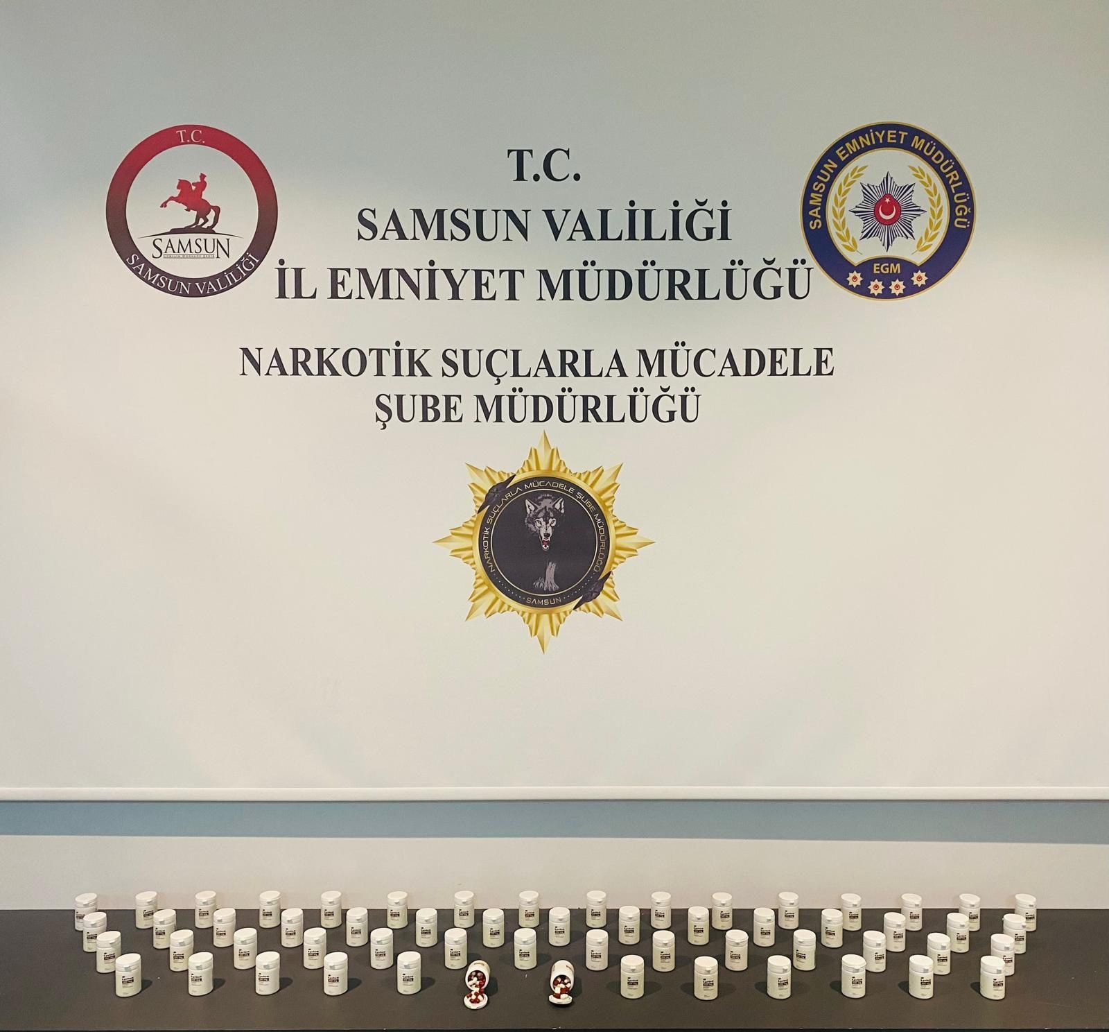 Adreslerde yapılan aramalarda, 3 bin 598 sentetik ecza hapı ele geçirildi.