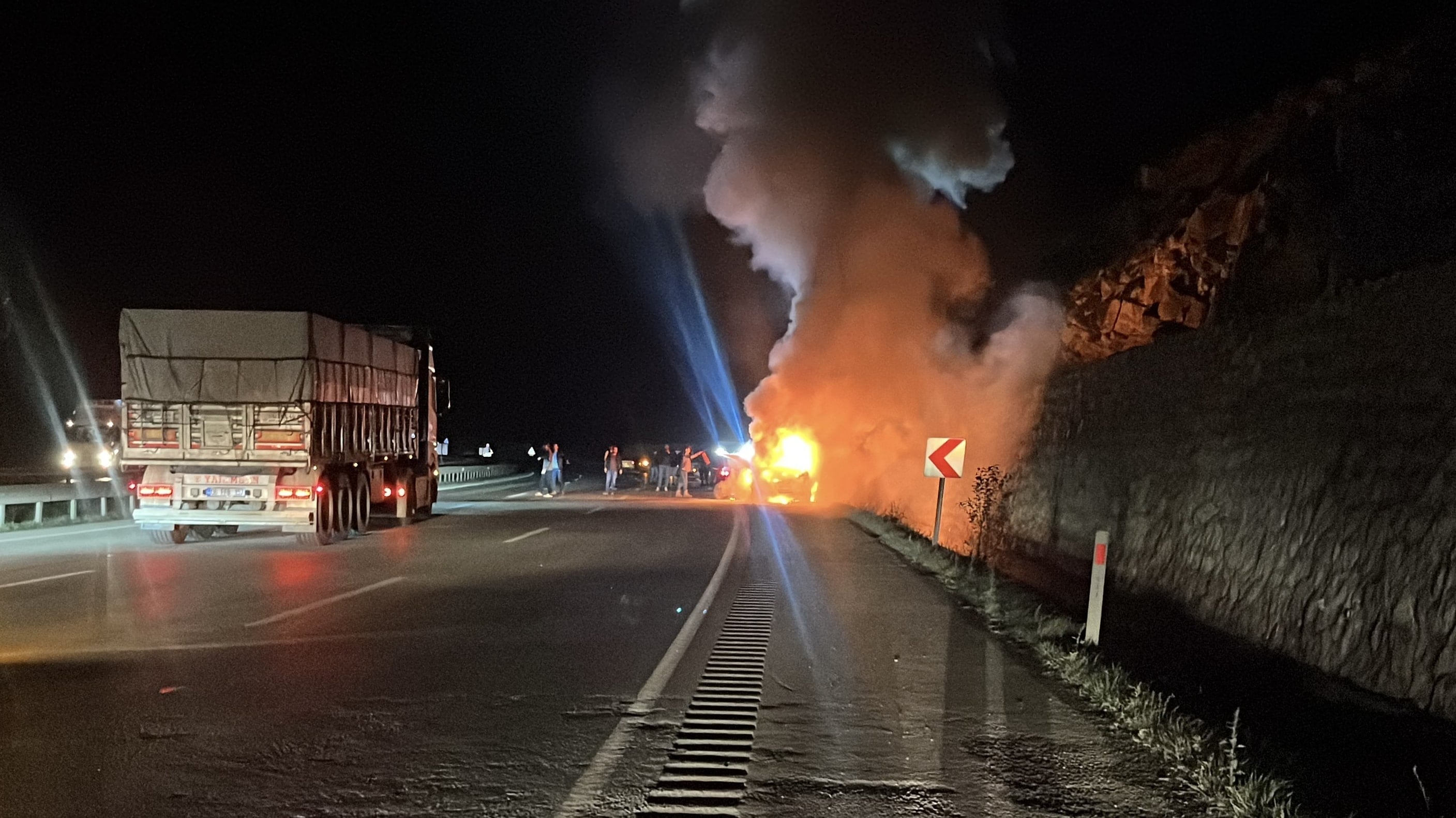 Araçtaki yangın, ekiplerin müdahalesiyle kontrol altına alınarak söndürüldü.