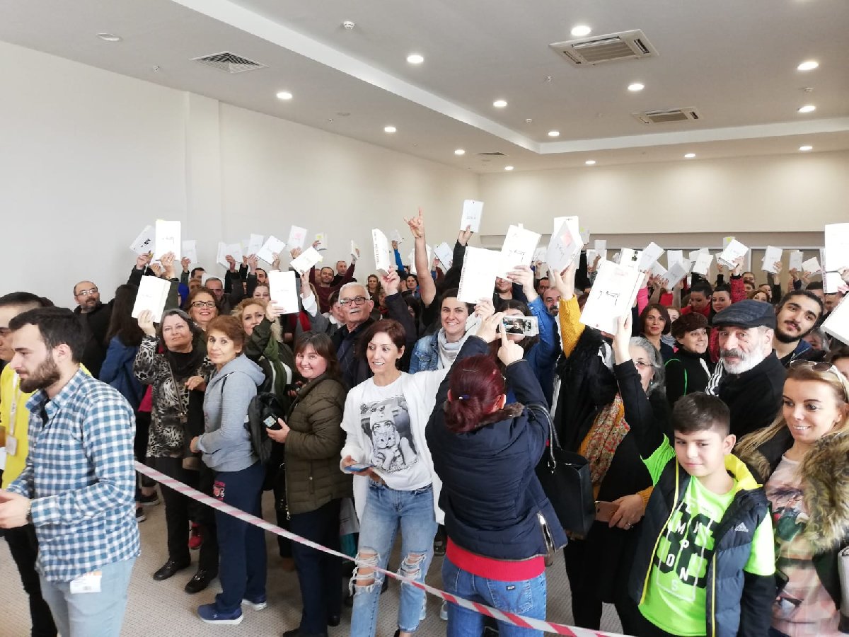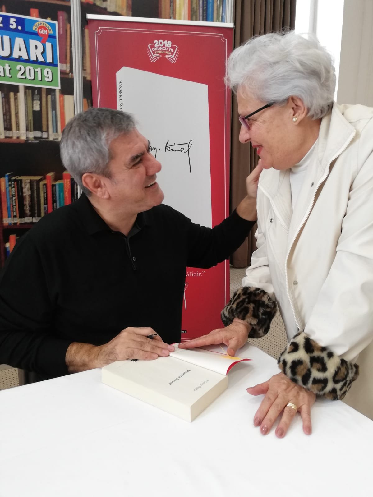 Kitap Fuarında uzun kuyruklar oluşturan Özdil okurları, kitaplarını imzalattıktan sonra yazarımızla anı fotoğrafı da çektirdi.