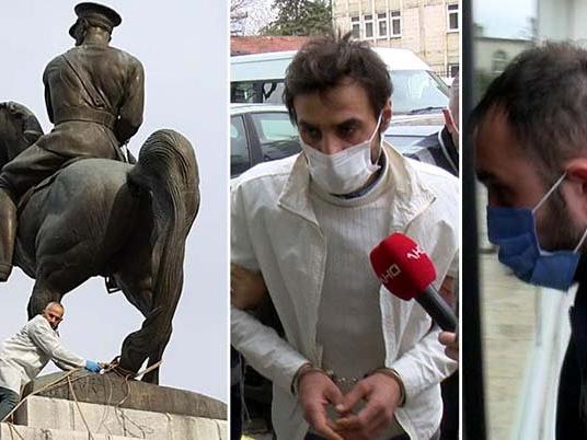 Sanıklardan Batuhan Fidan, iddianamede yer alan ifadesine göre, herhangi bir sivil toplum kuruluşuna üye olmadığını ve eylemi gerçekleştirmek için herhangi bir terör örgütünden talimat almadığını öne sürdü. Fidan, "Bu eylemi gerçekleştirmek için kimseden talimat almadım. Olay günü ben alkol aldıktan sonra Celali Rahman Fidan ile buluştuk, 'Gönlümü rahatlatacağım, anıtı arabaya takıp çekip yıkasım var' diyerek iş yerinin önündeki çelik halat ve urgan ipleri araca koydu. Atatürk Anıtı’nın yanına geldiğimde birlikte araçtan indik. Anıta çıkmak istedi, çıkamadı. Benden yardım istedi. Ben de ellerimi birleştirerek anıta çıkmasına yardım ettim" dedi. (DHA)