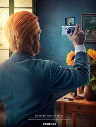 Samsung, en yeni ürünlerinden biri olan kompakt kamera NX Mini‘nin tanıtımı için yeni bir reklam kampanyasına imza attı. Reklamda Vincent van Gogh, Frida Kahlo ve Albrecht Dürer gibi tarihin önemli ressamlarını elinde NX Mini ile ‘selfie’ çekerken görüyoruz.