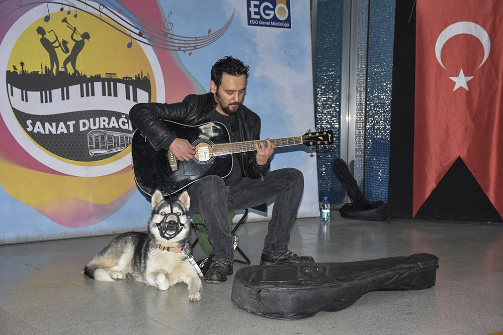 "Eva" isimli köpeğiyle müziğini icra etmek için gelen 38 yaşındaki Murat Soysal ise Cumhuriyet Üniversitesi Güzel Sanatlar Fakültesi Müzik Teknolojisi Bölümü'nden mezun olduğunu, şu an Hacı Bayram Veli Üniversitesinde felsefe okuduğunu söyledi.