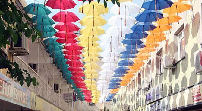 Silopi Belediyesi'nin 7 bin 500 lira harcayarak 260 şemsiye ile donattığı Sanat Sokağı, halkın da büyük beğenisini topladı.