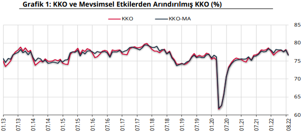 Mevsimsel etkilerden arındırılmış kapasite kullanım oranı (KKO-MA), bir önceki aya göre 1,5 puan azalarak yüzde 76,6 seviyesinde gerçekleşti.