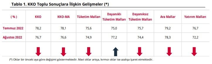 Dayanıklı tüketim mallarında ise kapasite kullanım oranı ağustosta yüzde 75,0'dan yüzde 77,2'ye yükseldi.