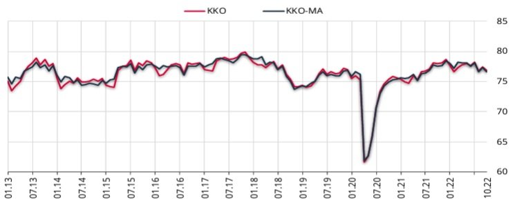 Mevsimsel etkilerden arındırılmış kapasite kullanım oranı (KKO-MA), bir önceki aya göre 0,7 puan azalarak yüzde 76,6 seviyesinde gerçekleşti.