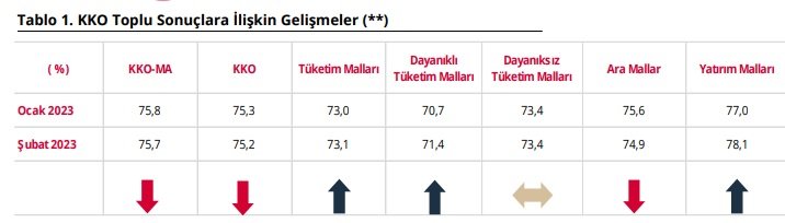 KKO verileri, 2023 yılı Şubat ayında, imalat sanayinde faaliyet gösteren 1678 iş yeri tarafından İktisadi Yönelim Anketi’ne verilen yanıtlar Merkez Bankası tarafından toplulaştırılarak değerlendirildi.