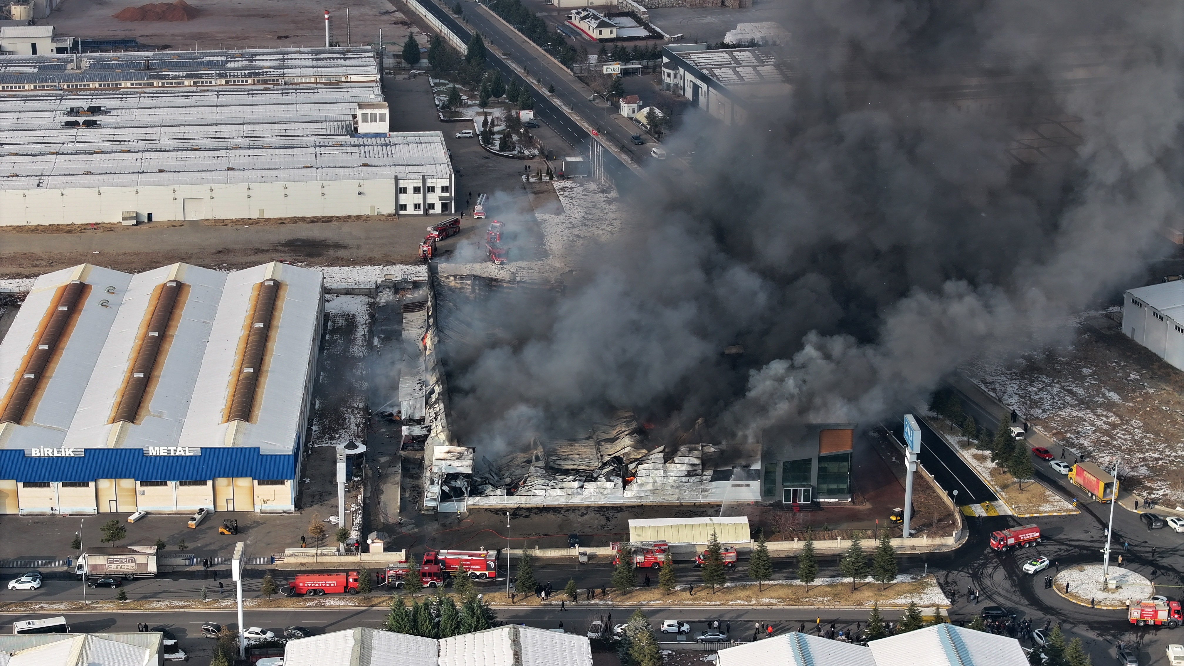 Fabrikaya gelen Büyükşehir Belediye Başkanı Memduh Büyükkılıç ve Organize Sanayi Bölgesi Başkanı Mehmet Yalçın, yangına ilişkin ekiplerden bilgi aldı.