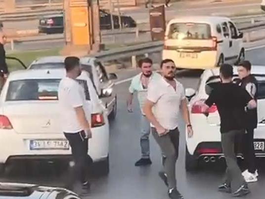 Yolun ortasında araçtan inen 2 kişi, tartıştıkları sürücüye, tekme, yumruk ve kemerle saldırdı. Trafikteki diğer sürücüler müdahale ederek, kavgayı ayırdı.