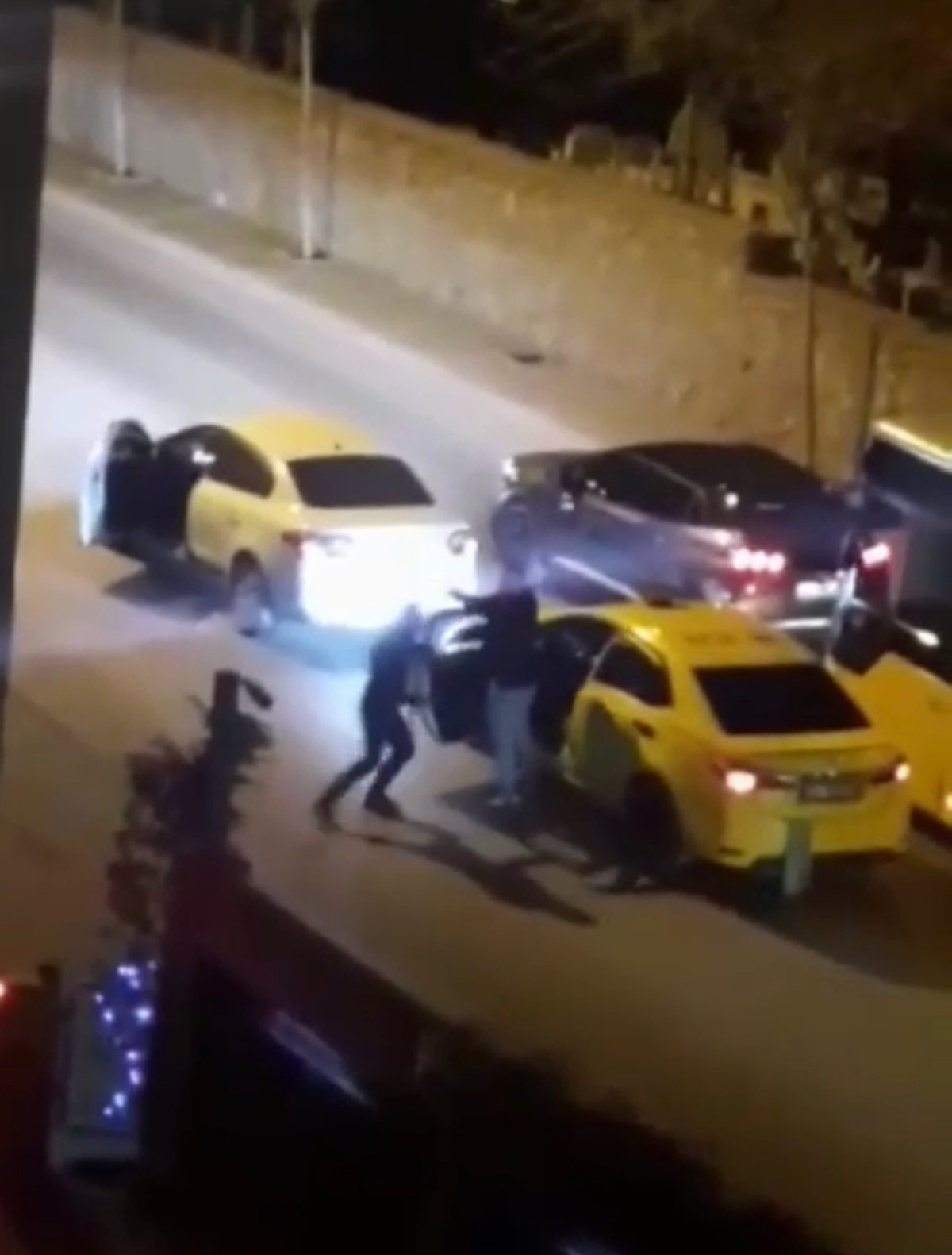 Sancaktepe'de taksi şoförü ile otomobil sürücüsü arasında yol verme nedeniyle çıkan yumruklu kavga cep telefonu kamerasına yansıdı.