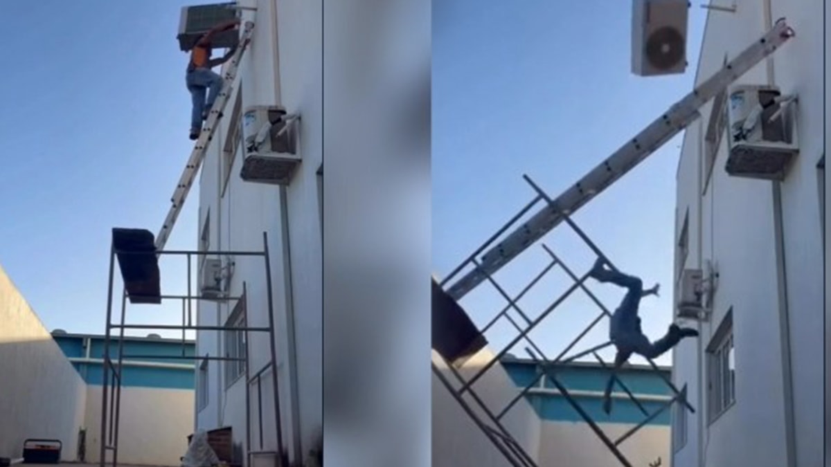 Bir iş yerinin dış cephesinde klima montajı için demir iskelenin üzerine kurduğu merdivenden sırtında klimayla çıkmaya çalışan usta, dengesini kaybedip yere düştü. Kentte çekildiği belirtilen görüntülerde, ismi öğrenilemeyen ustanın güvenlik önlemi ya da koruyucu ekipman kullanmadan çalışmaya başladığı görüldü. Klimayı binanın dış cephesine monte etmek isteyen usta, demir iskelenin üzerine yerleştirdiği merdivenden ikinci kakta tırmanırken, üst basamaklara geldiğinden merdiven bir anda kaydı. Metrelerce yükseklikten beton zemine düşen ustanın üzerine de demir iskele, merdiven ve taşıdığı klima devrildi. Yardım isteyen ustanın yaralandığı anlar, çevredeki kameraya yansıdı.
