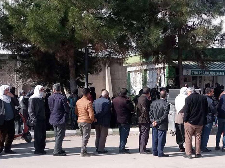 Satış fiyatı 99 TL’den indirimle 92.5 TL’ye düşen ayçiçeği yağından almak isteyen vatandaşlar Eyyübiye İlçesi’ndeki Eyüp Nebi Mahallesi’nde bulunan tanzim satış mağazası önünde uzun kuyruk oluşturdu. Kuyruğa kadınlar ayrı, erkekler ayrı sıralardan girerken, kişi başı en fazla 5’er kiloluk ikişer teneke yağ verildi.