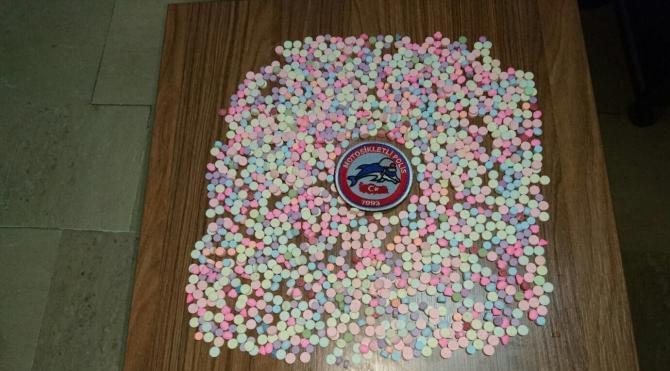 Bir ihbarı değerlendiren Kaçakçılık ve Organize Suçlarla Mücadele Şube Müdürlüğü ekipleri, Ahmet T.`nin evine baskın düzenledi. Arama yapılan evde 1334 uyuşturucu hap ele geçiren ekipler, Ahmet T.’yi gözaltına aldı. Emniyet Müdürlüğü`nde sorgulanan şüpheli, `uyuşturucu madde ticareti yapmak` suçundan adliyeye sevk edildi.