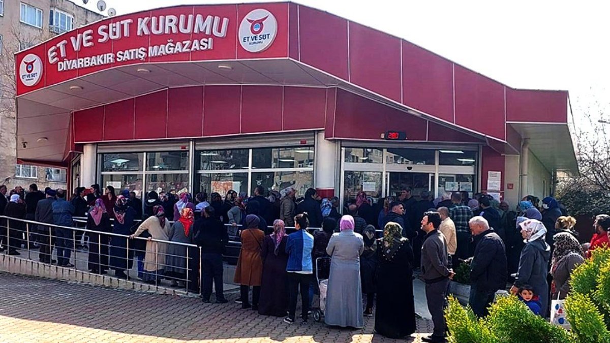 Ramazan ayında vatandaşlar çaresiz kalarak yine Şehitlik semtindeki Et ve Süt Kurumu’nun yolunu tuttu, burada da 1 kilodan fazla et alamıyor. Bazı aileler eşi ve çocuklarıyla et kuyruğuna girip 1 kilo sınırını bu şekilde aşmaya çalışıyor. Zincir marketler ile Et Süt Kurumu arasında kiloda 110 lira fiyat farklı yaşanırken, günlük ortalama 4 ton satış yapılıyor.