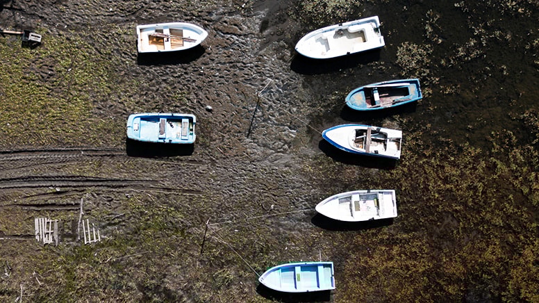 Şehrin en büyük su kaynağı Sapanca Gölü’ndeki su kaybıyla iskeleler susuz kalırken göl içerisindeki kayıklarsa tamamen karaya oturdu.