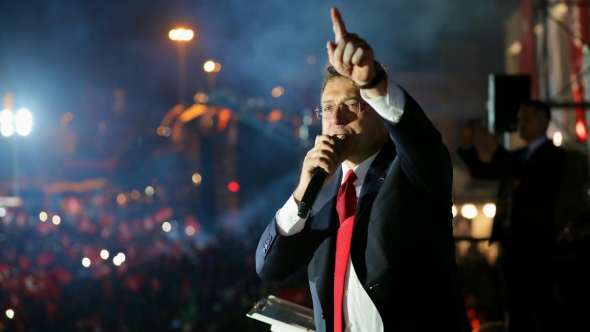 Üçüncü kez İBB Başkanı seçilen Ekrem İmamoğlu,Saraçhane’deki başkanlık binası önünde toplanan coşkulu kalabalığa hitap etti. 00.30 sıralarında İBB binasının önündeki otobüsün üzerine ailesi ve CHP İstanbul İl Başkanı Özgür Çelik ile birlikte çıkan İmamoğlu sözlerine “Benim kocaman bir İstanbullu ailem var. Sizleri tanıştırmaya, sizlerle kucaklaşmaya geldim. Merhaba İstanbul. 16 milyon kazandı. Kutlu olsun. Bu seçimin kaybedeni yok. İstanbul’a hayırlı olsun” sözleri ile başladı.