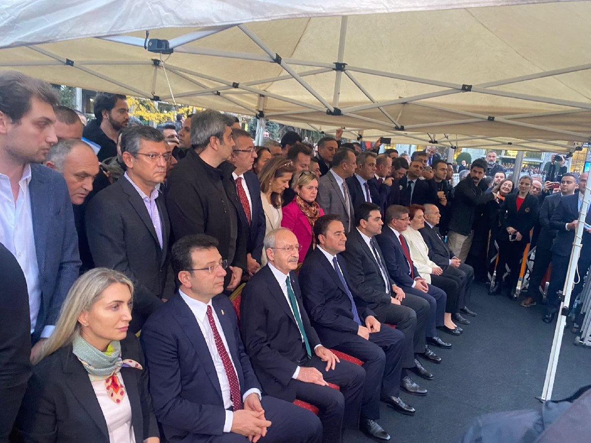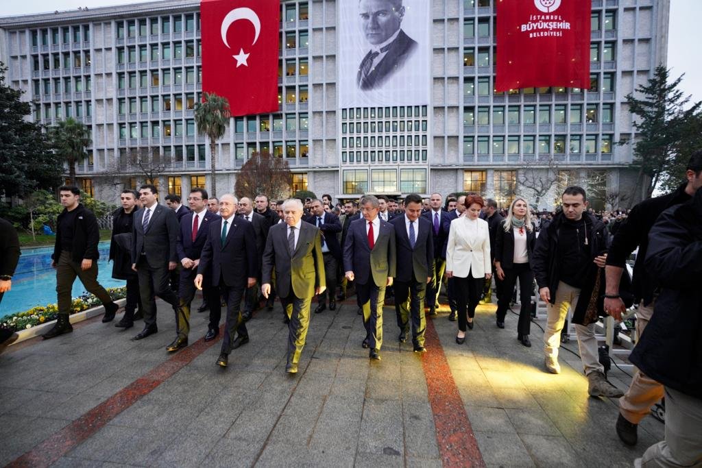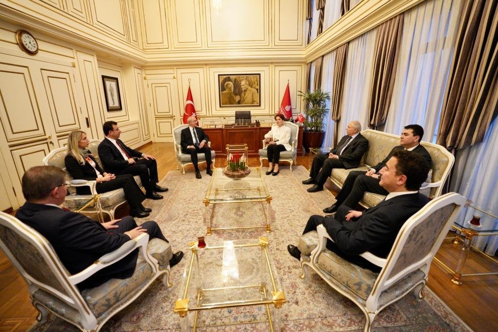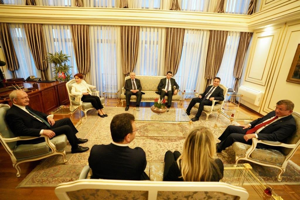 İBB Başkanı Ekrem İmamoğlu’na verilen 2 yıl 7ay hapis cezası ve siyasi yasak kararından ardından 6’lı masanın liderleri CHP Genel Başkanı Kemal Kılıçdaroğlu, İYİ Parti Genel Başkanı Meral Akşener, DEVA Partisi Genel Başkanı Ali Babacan, Gelecek Partisi Genel Başkanı Ahmet Davutoğlu, Demokrat Parti Genel Başkanı Gültekin Uysal ve Saadet Partisi Genel Başkanvekili Sabri Tekir, İBB Başkanlık binasının bulunduğu Saraçhane’de İmamoğlu'nun makam odasında bir araya geldi.