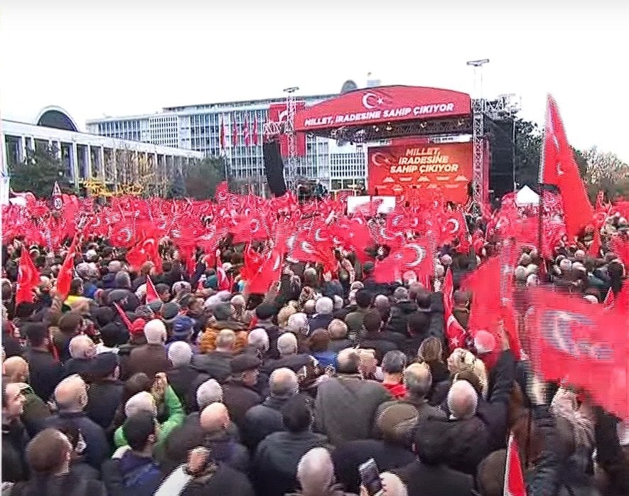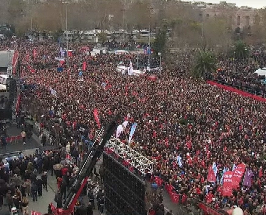 *Milli iradeyi geçersiz kılmak için ellerinden ne geliyorsa yapıyorlar. Ne hukuk ne ahlak, ne din ne iman… Hiçbir şeyi gözleri görmüyor. Bugün burada bunca büyük bir kalabalığı harekete geçiren, ortak vicdandır. Hepimizi birleştiren haksızlığa, hem de apaçık haksızlığa, adaletsizliğe şahit olmaktır.
