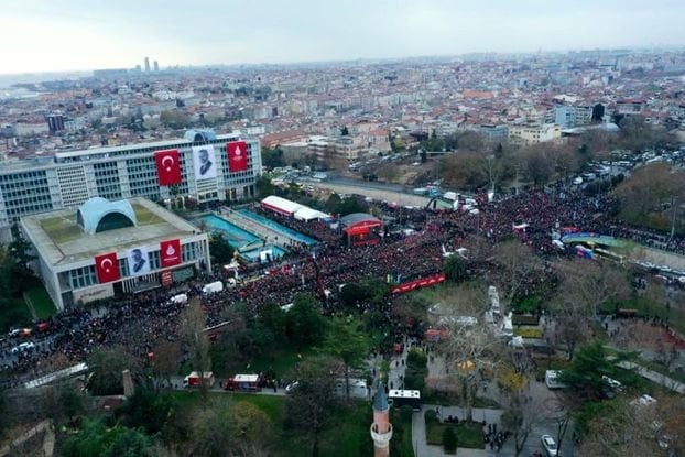 *Kalabalıktan yükselen “hükümet istifa” sloganlarına İmamoğlu “Öyle kolay kaçmak yok onları gönderecek 6 siyasi partinin lideri burada” karşılığını verdi.